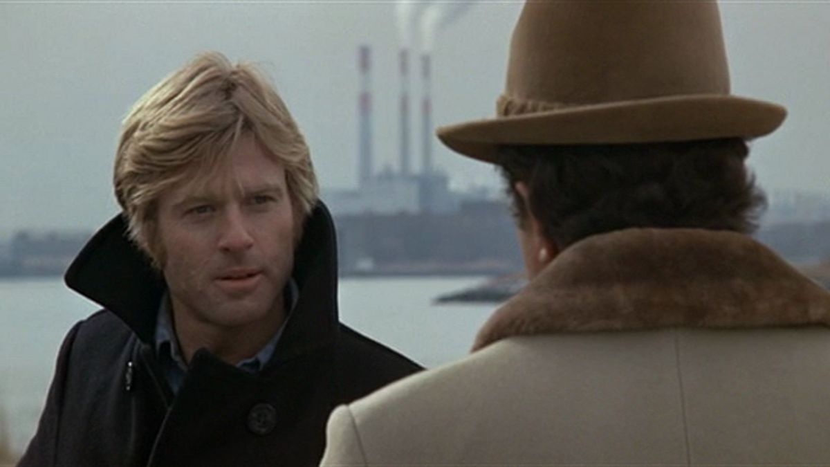 After his entire team gets murdered when he’s out to lunch, you can trace the ongoing shifts in Redford’s performance gradually, shedding his trusting façade for one that is wary and tough as Turner tries to negotiate with his unsympathetic overlords and outsmart his pursuers. Dressed in a jeans-and-sweater look paired with impossibly well-fitted tweed blazers and navy peacoats of turned-up collars—it’s apt to mention that no one running for dear life has any right to look this devastatingly handsome— Redford brings a quietly towering poise to Turner’s assured body language that sometimes has a hint of tentativeness. Redford calibrates those occasional traces of vulnerability we see in Turner relentlessly, especially when he goes toe-to-toe with Max von Sydow’s uncompromising baddie in the elevators, phone booths, and street corners of Christmastime New York.