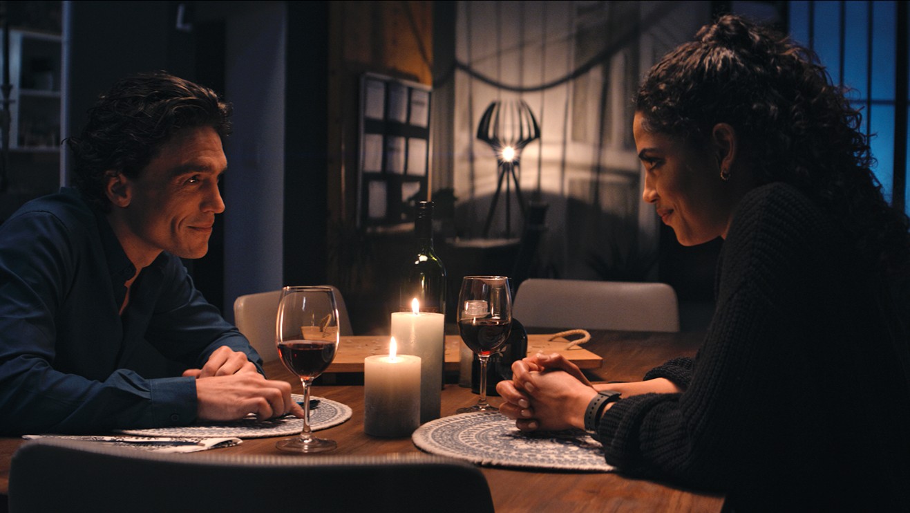 Shamilla Miller is solid as the intriguing Hannah, a chef who has been forced into the relatively unsatisfying work of food photography. You know the fancy shots that accompany overpriced cookbooks, which she wishes she could write herself. Her friend Evan (Steven John Ward) keeps coming over to try her cuisine and watch true crime episodes with her, clearly putting in the time because he hopes to escape the friend zone. When a new neighbor named Blaire (Nina Erasmus) catches Hannah’s eye, Hannah starts an unexpected role play with Evan, suggesting that she could invite Blaire over for a bit of dinner and a bit of murder. Is she just playfully incorporating their true crime obsession into flirtatious banter? That’s what Evan presumes at first, and he plays along until he starts to worry.